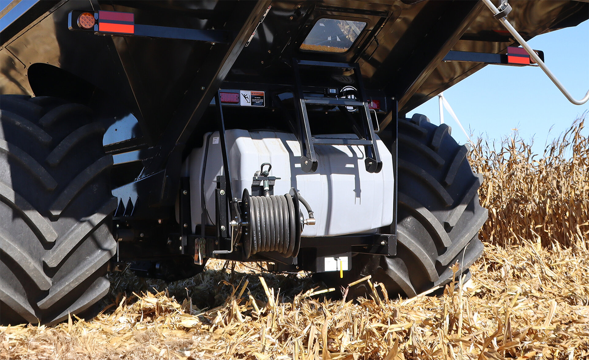 40" main end-wheels feature 10-bolt hubs that are greaseable with triple-lip seals and a steel guard for optimum lubrication. Greaseable hubs ensure the operator can push out any dirt and debris from the hub, increasing the life and eliminating down time. The cast iron pivoting mid-rollers are on the same plane as the main end-wheels for optimum flotation and reduced stress on the belt.